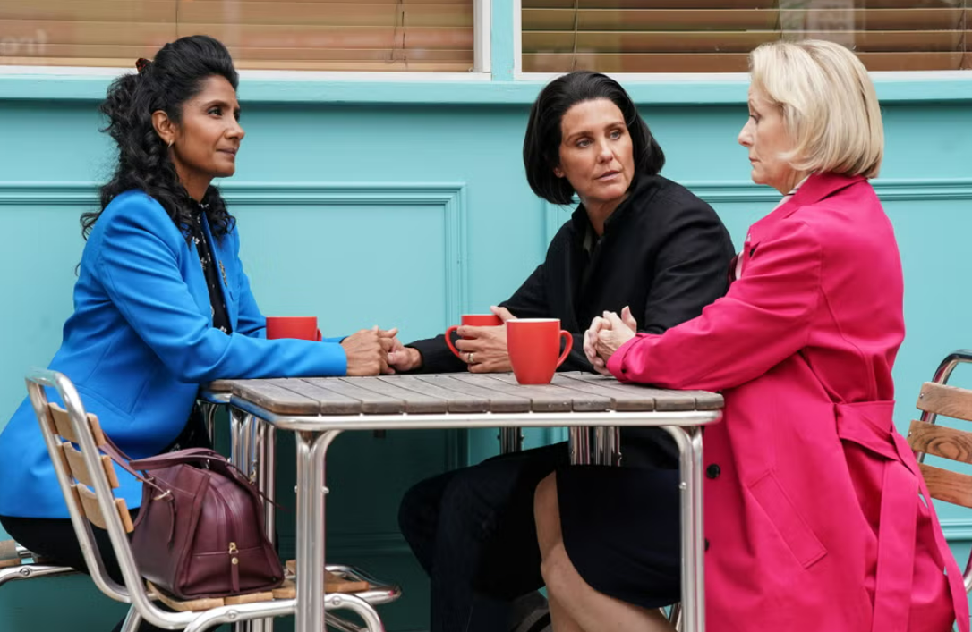 It’s no secret that Eve has a fractured relationship with her family, given their homophobic views and the untimely death of her twin sister, Erica. But now that Eve and Suki need a reference from Eve’s mum, Norma, to go ahead with their adoption plans, the couple prepare for a visit from her.