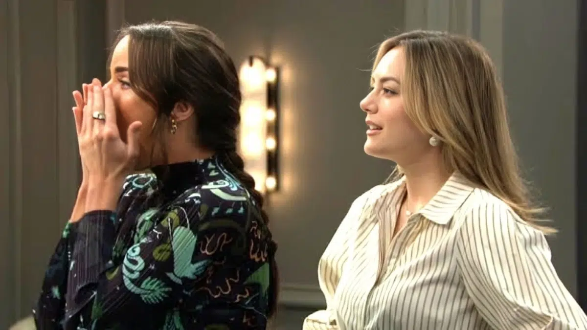 In another office, Hope Logan (Annika Noelle) talks about Beth Spencer’s (Jordyn Grace) excitement about the wedding. The topic turns to Deke and they all wonder what his boyfriend will be like.